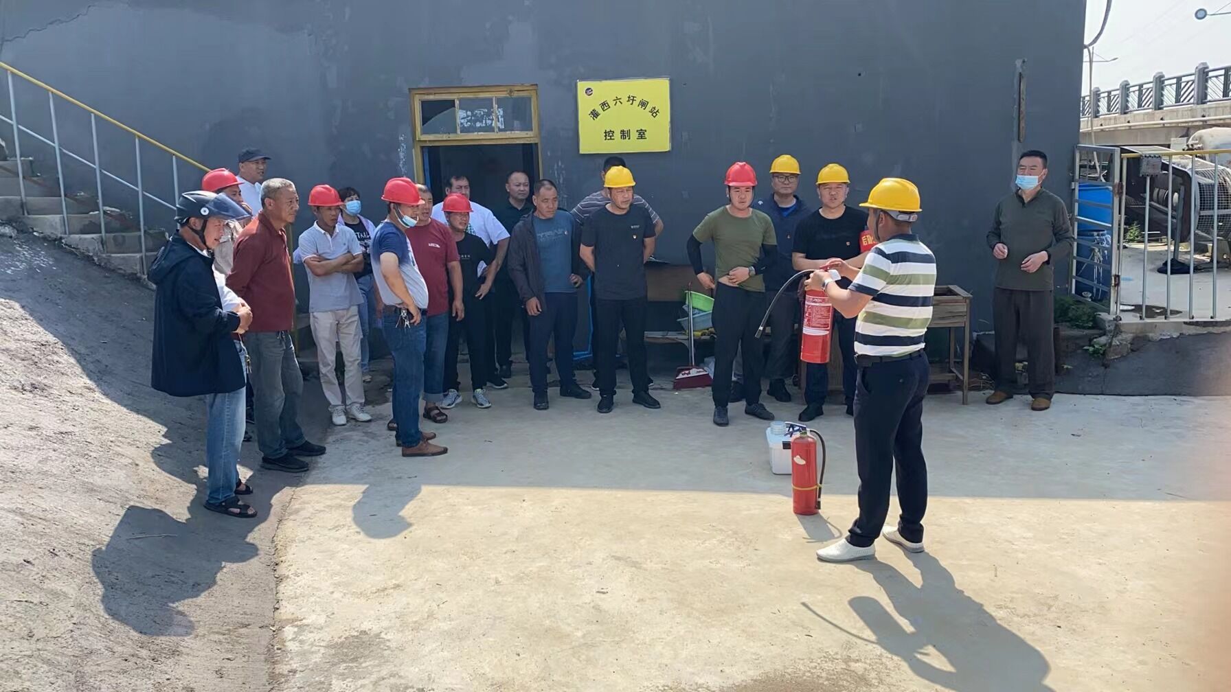 現(xiàn)場總指揮由經(jīng)理江德全擔(dān)任,副總指揮由分管安全經(jīng)理孫曉波擔(dān)任,滅火人員為六圩閘班組人員和其他閘站班組人員。分管安全領(lǐng)導(dǎo)負(fù)責(zé)主持、組織全單位人員按火災(zāi)事故“應(yīng)急預(yù)案”的要求進(jìn)行模擬演練。這次模擬演練以2022年6月的某一天,班組生產(chǎn)現(xiàn)場因設(shè)備或線路短路等不明原因?qū)е履吃O(shè)備突然冒煙,進(jìn)而起火燃燒,并且火勢迅速蔓延擴(kuò)大。在大家齊心協(xié)力的撲救行動中,火勢慢慢變小,最后熄滅。事后,責(zé)令相關(guān)責(zé)任人寫出書面報告,必須以最快的方式逐級上報,如實匯報,不得隱瞞。