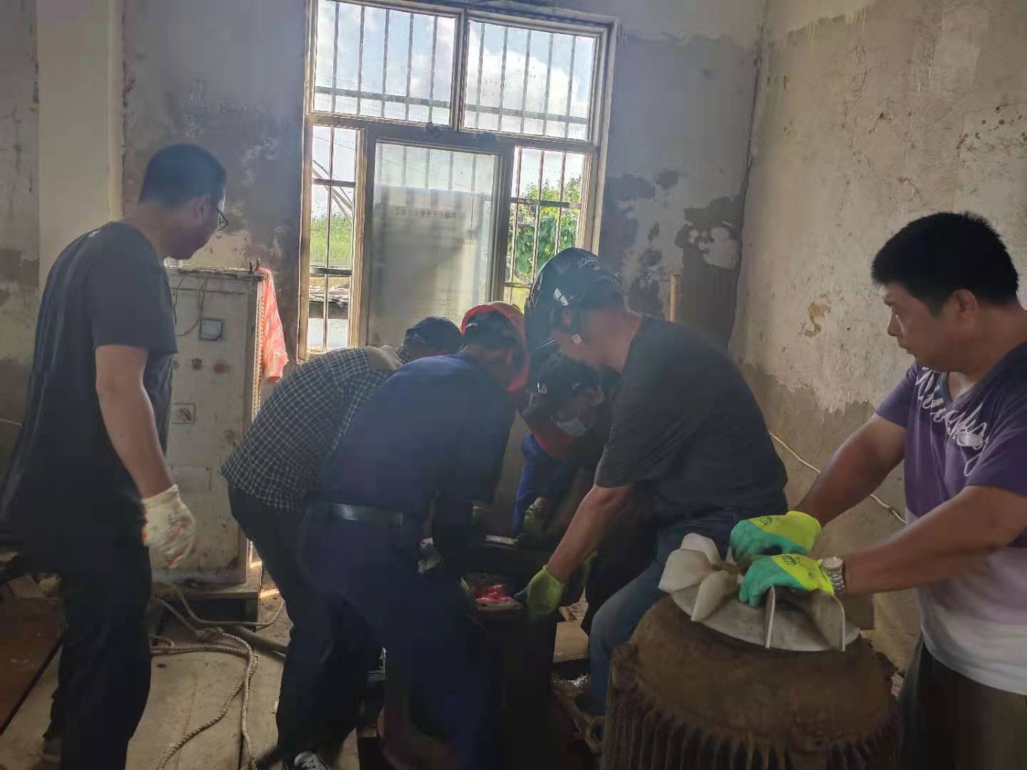 鑒于此次疫情已經(jīng)迅速波及國內(nèi)多個(gè)省市,防控形勢十分嚴(yán)峻。當(dāng)前又正值海水養(yǎng)殖戶用水高峰,連續(xù)多日供水使六圩閘大站5臺(tái)155KW軸流泵其中三臺(tái)出現(xiàn)故障,小站2臺(tái)55KW軸流泵全部發(fā)生故障,機(jī)泵不能正常運(yùn)轉(zhuǎn)。資源管理中心當(dāng)即召開班子會(huì)議,對防疫和修泵工作進(jìn)行統(tǒng)籌部署,明確分工,壓實(shí)責(zé)任,積極做好防疫宣傳引導(dǎo),不留死角;搶修機(jī)泵做到安全監(jiān)護(hù)管理到位,確保潮汛來臨之前要維修到位,不誤供水。為了搶時(shí)間趕進(jìn)度,該公司經(jīng)理江德全多方協(xié)調(diào),從兄弟單位借調(diào)2名年輕機(jī)修工錢明星和楊加棟來協(xié)助機(jī)修組,并安排六圩閘站全體員工參與。他們頂著機(jī)房30多度的高溫加班加點(diǎn),中午吃著快餐,飯后又立即投入搶修工作中,通過六天的連續(xù)奮戰(zhàn),機(jī)器全部維修到位,保證了泵站及時(shí)供水。(資源管理中心宣)