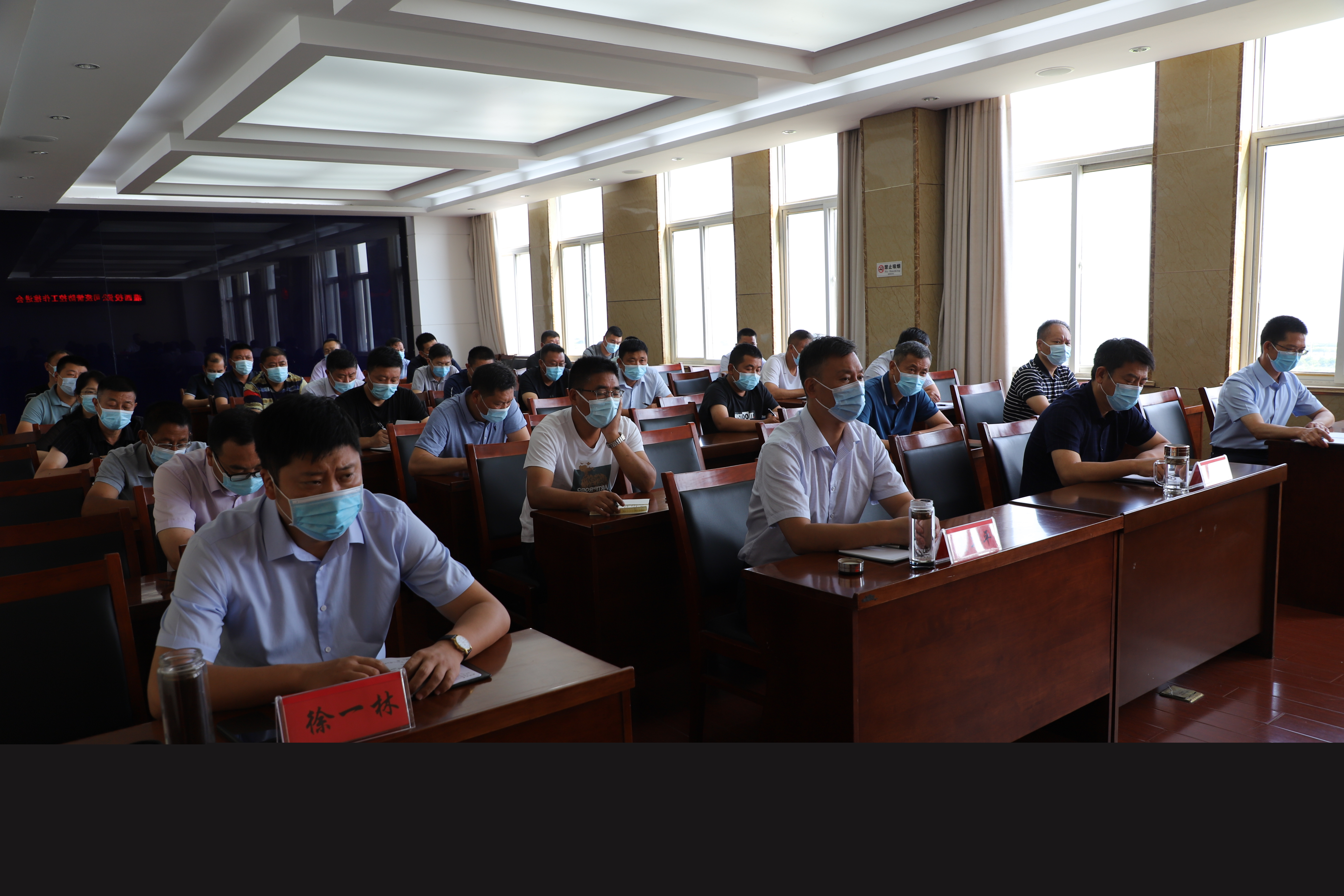 8月2日,灌西投資公司召開疫情防控推進會,公司領導班子全體成員及各單位黨政負責人參加會議。