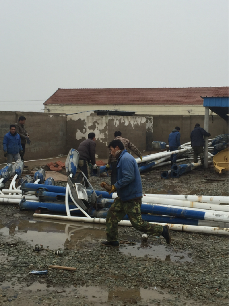(上圖為標(biāo)準(zhǔn)化廠房的廢棄鋼材運送到日曬制鹽3場后家院,機械設(shè)備服務(wù)中心職工一起搬運鋼材。)