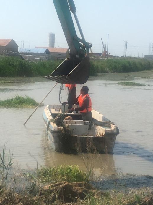 近日,機(jī)電服務(wù)公司租用長臂挖掘機(jī)清理西旺公司泵站河道的水草。又因河道中間水草面積較大,挖掘機(jī)不能完全清理,機(jī)電服務(wù)公司機(jī)電組王緒華等人,租用小船用繩子加鐵鉤等辦法,清理河道中的水草。(蘇南)