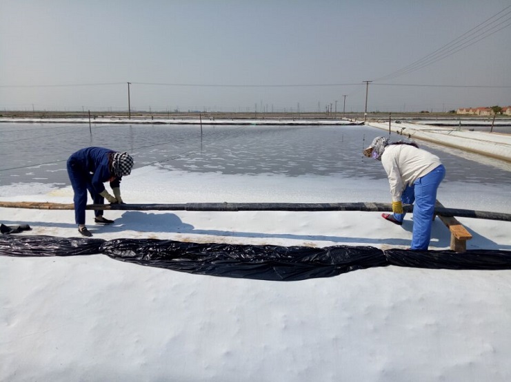 實(shí)業(yè)公司制鹽分公司、海鹽基地灘場(chǎng)文明建設(shè)正在進(jìn)行中。 分公司海鹽基地二班近階段正在上塑布。班組全員先壓浮板、裹浮板、釘老樁,裝布,目前該班組已上塑布三塊六十公畝,計(jì)劃上九塊一百八十公畝。(實(shí)業(yè)公司)