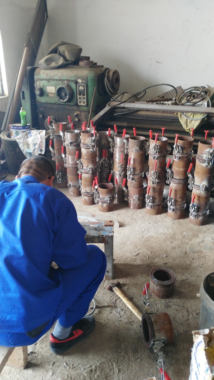 為提高扒鹽管道安裝速度,減輕鹽業(yè)工人勞動(dòng)負(fù)荷,連日來,機(jī)電服務(wù)公司制作人員認(rèn)真進(jìn)行管道快接頭制作,他們分工負(fù)責(zé),2人專門焊接,4人進(jìn)行管道接頭安裝,預(yù)計(jì)本周五一臺(tái)機(jī)組63節(jié)管道,4個(gè)彎頭制作完成,下周進(jìn)行實(shí)際試用。(機(jī)電服務(wù)公司)