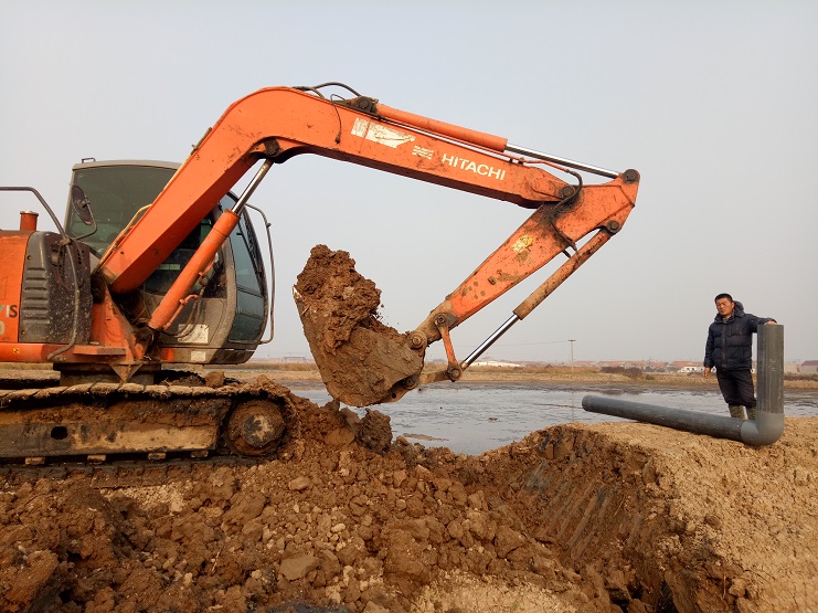為了加大灘場改造力度,盡早將海水順暢的引進灘地、鹵灘及時排淡,近日,實業(yè)公司制鹽分公司海鹽基地三班班組,忙著下進排水管道。三班班長金立柱更是早出晚歸,望改造的灘場早日投入生產(chǎn)。(圖為三班班長正準(zhǔn)備下管道)。 (實業(yè)公司)