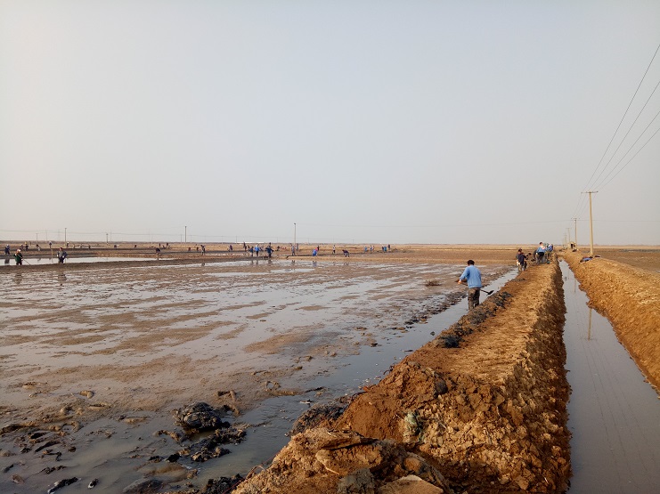 近日,實業(yè)公司制鹽分公司海鹽基地,一班班組灘場改造呈現(xiàn)出一片繁忙的景象。日曬制鹽新河制鹽分公司、埒南制鹽分公司等兄弟單位近兩日,輪流調(diào)動數(shù)百余人參加實業(yè)公司海鹽基地?fù)茰献鲔髸?zhàn)?,F(xiàn)場場面十分壯觀,大家干得熱火朝天:有挖泥澆水的、踩泥打堰的、抹埝找平的......員工們齊心協(xié)力地打好這次攻堅戰(zhàn)。本次共計撈溝做埝近四千米。實業(yè)公司全體員工對兩公司的辛勤勞動給予了贊許和由衷的感謝。(史祥燕)