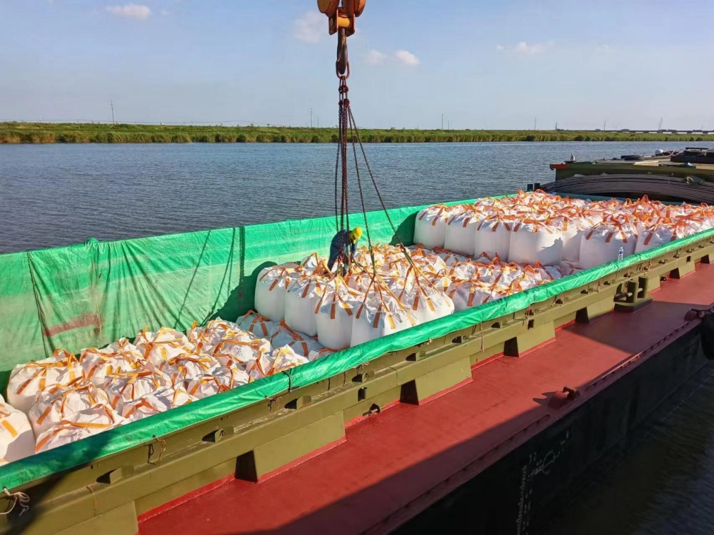 在船艙內(nèi)和碼頭的溫度相差10度,而且船艙的深度達(dá)5米左右,濃郁的氯化氨氣味,讓悶熱的空氣仿佛凝固,但工人們依然忙碌有序,克服困難,沒有絲毫抱怨,在人與機(jī)械化完美的組合,一袋袋貨物的運(yùn)輸,傳遞著一條不知疲倦的生產(chǎn)作業(yè)線。看著貨物穩(wěn)穩(wěn)裝載在船上,讓人體會(huì)到什么是真正的團(tuán)隊(duì)協(xié)作。