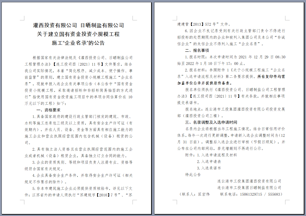 關(guān)于建立國有資金投資小規(guī)模工程 施工“企業(yè)名錄”的公告