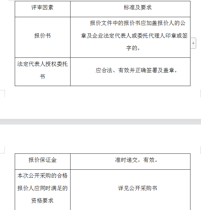 2、評審委員會將根據(jù)以下標(biāo)準(zhǔn)對各報價人進(jìn)行初步評審,有一項不符合要求的,作否決報價處理,不進(jìn)入詳細(xì)評審。