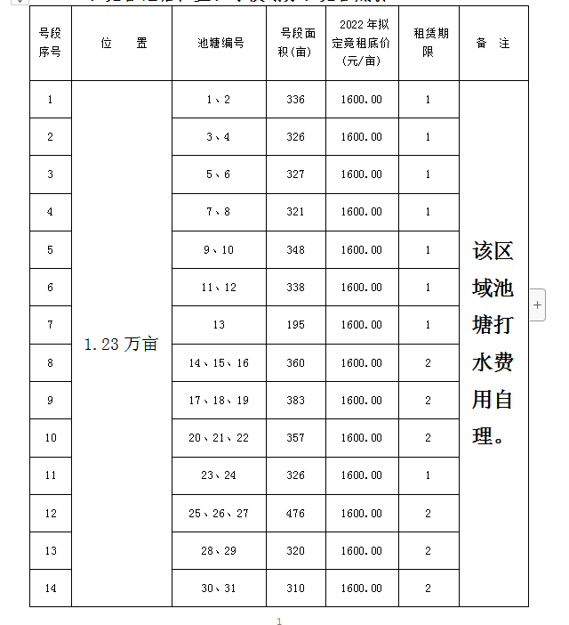 一年期內(nèi)的池塘租賃價格按獲得池塘承租權(quán)的競租方報價執(zhí)行。