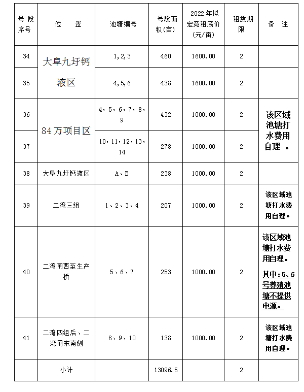2022年價格按獲得池塘承租權(quán)的競租方報價執(zhí)行;2023年池塘租賃價格在其2022年租賃價格基礎(chǔ)上上漲30元/畝。