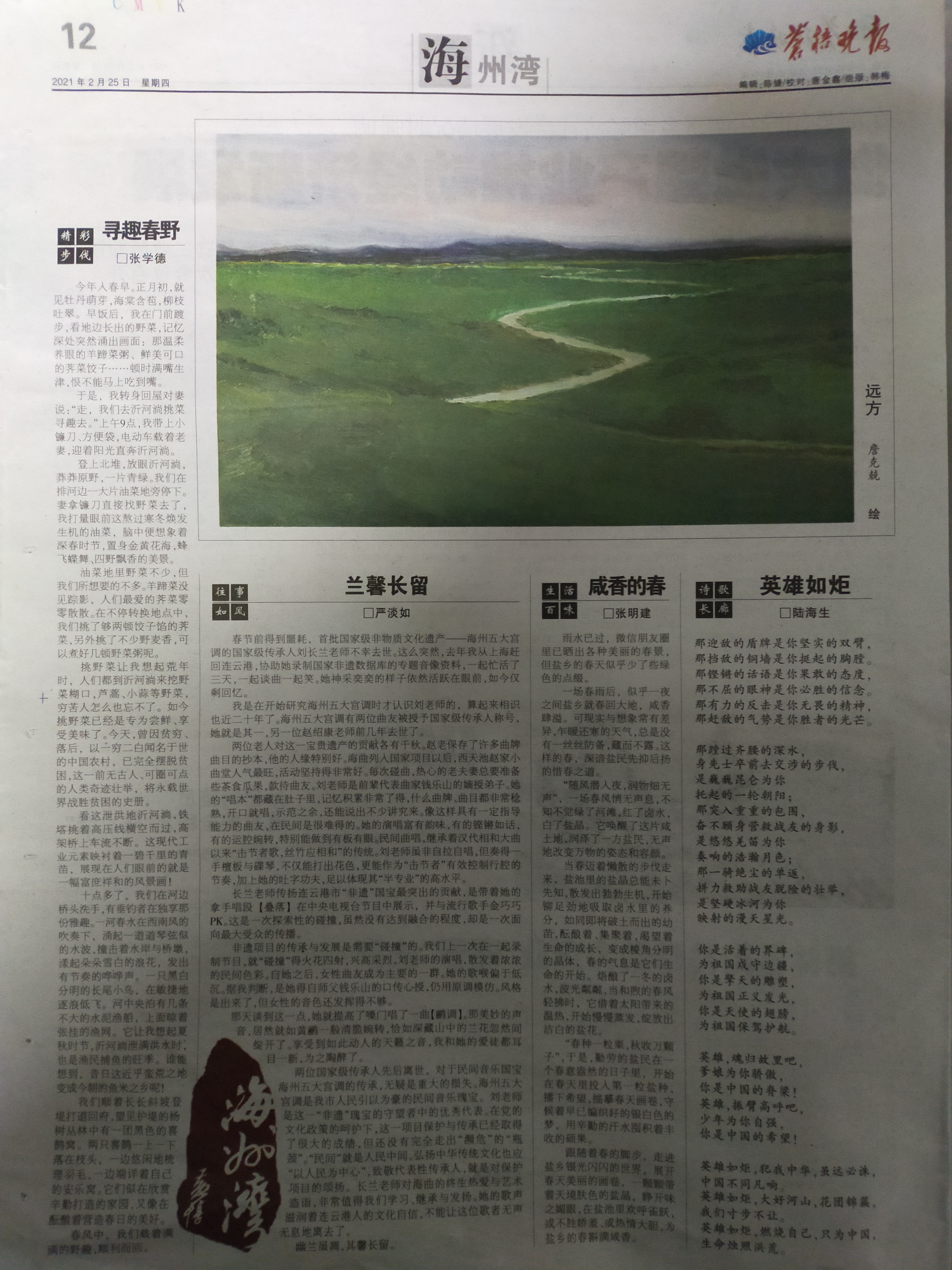 一場春雨后,似乎一夜之間鹽鄉(xiāng)就春回大地,咸香肆溢。可現(xiàn)實與想象常有差異,乍暖還寒的天氣,總是沒有一絲絲防備,藏而不露。這樣的春,正深諳鹽民先抑后揚的惜春之道。