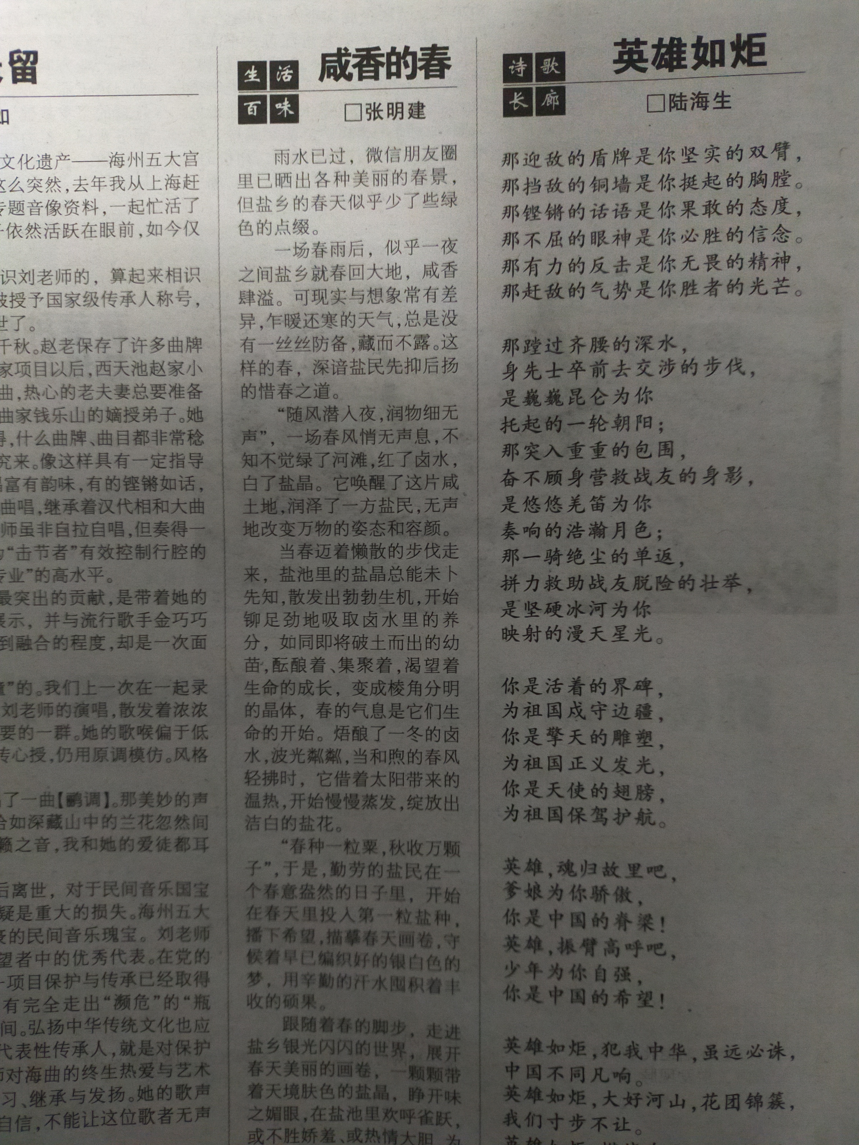 跟隨著春的腳步,走進鹽鄉(xiāng)銀光閃閃的世界,展開春天美麗的畫卷,一顆顆帶著天境膚色的鹽晶,睜開味之媚眼,在鹽池里歡呼雀躍,或不勝嬌羞、或熱情大膽,為鹽鄉(xiāng)的春斟滿咸香。(張明建)