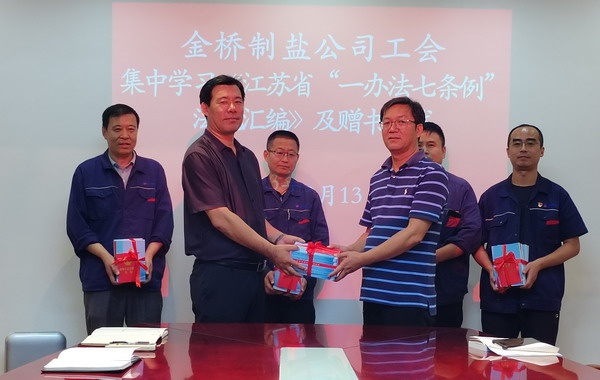 活動(dòng)中,首先集中學(xué)習(xí)了《江蘇省實(shí)施<工會(huì)法>辦法》部分章節(jié),起到領(lǐng)學(xué)促學(xué)作用;隨后舉行贈(zèng)書儀式,向各分會(huì)及相關(guān)部門贈(zèng)送《中華人民共和國(guó)憲法》及《江蘇省“一辦法七條例”法規(guī)匯編》50余冊(cè)。