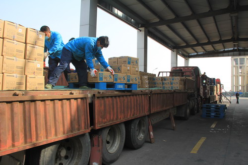 奮力拼搏,保障及時發(fā)運。為了保障市場鹽產(chǎn)品供應,公司發(fā)運人員日夜堅守,成品鹽下線后,經(jīng)檢驗合格就立即裝運。裝卸人員每天早晨7點左右開始裝卸工作,經(jīng)常工作到第二天凌晨1點,用裝卸班組人員的話說:“只要產(chǎn)品合格就立即裝車,不耽誤一分鐘”;在做好產(chǎn)品裝運的同時,裝卸人員每天還能及時完成生產(chǎn)原輔材料卸貨任務;自4月上旬出現(xiàn)食鹽搶購現(xiàn)象以來,裝卸人員平均每天卸紙箱12000余只、卸片膜100余卷、裝運各類大小包裝鹽產(chǎn)品350噸左右,用他們辛勤的汗水為保障食鹽市場供應做出貢獻。(凌家佳)