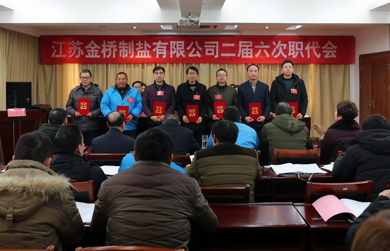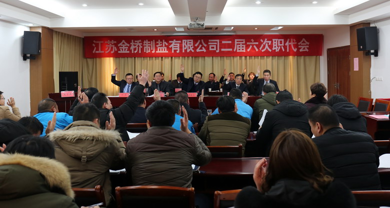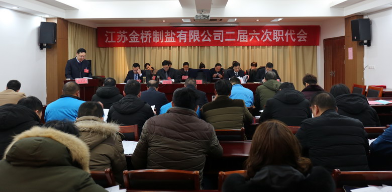 2月15日上午,我公司二屆六次職代會在公司三樓會議室隆重召開,來自各車間、單位、部門的46名職工代表參加了會議,共同商討金橋制鹽發(fā)展大計。公司領(lǐng)導(dǎo)班子成員及職工代表出席會議,部分先進代表列席會議。公司董事長、黨委書記、總經(jīng)理朱桂玉作工作報告。大會由公司黨委副書記、紀(jì)委書記、工會主席李昊睿主持。