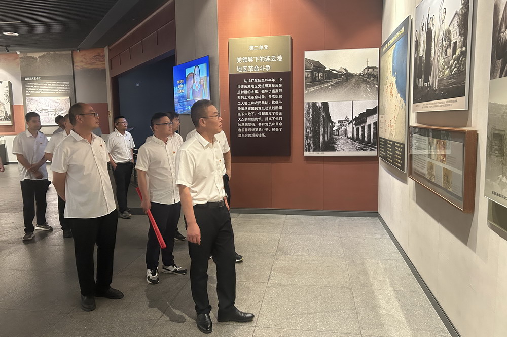 在連云港市革命博物館莊嚴(yán)肅穆的展廳內(nèi),大家認(rèn)真聆聽講解員講述連云港地區(qū)的革命斗爭史。一件件珍貴的歷史文物、一幅幅生動的歷史照片,再現(xiàn)了革命先烈們?yōu)槊褡褰夥攀聵I(yè)英勇奮斗的光輝歷程。在革命烈士浮雕前,全體黨員整齊列隊,重溫入黨誓詞,強(qiáng)化政治信仰,增強(qiáng)責(zé)任擔(dān)當(dāng)。