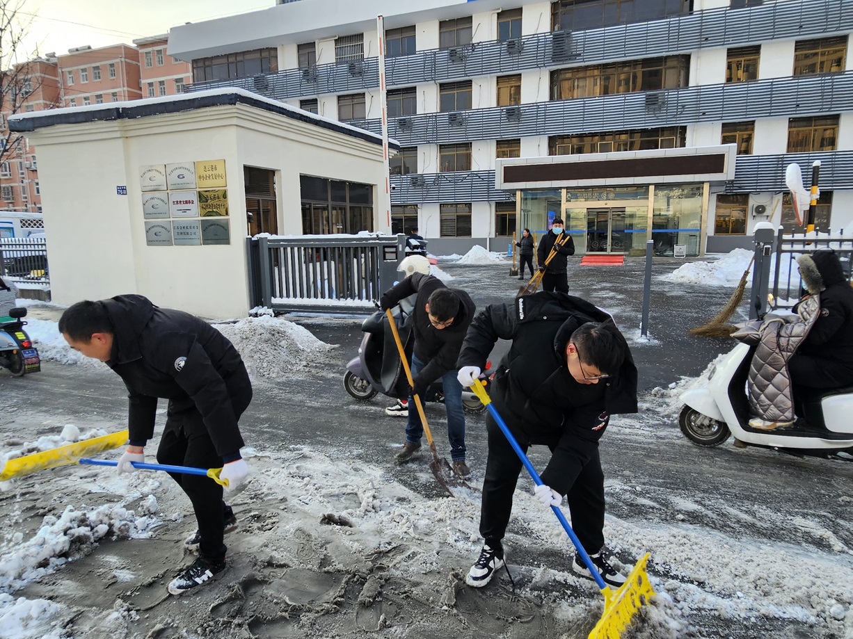 “不需要額外的通知,我們以雪為令”,5日一早,天剛蒙蒙亮,由金融板塊的黨員干部們組成的一群“壯小伙”們便陸續(xù)來到公司,不需要言語動員,他們自覺的拿起工具,以身作則,不畏嚴(yán)寒,立即投入到掃雪除冰的工作中。他們的身影在風(fēng)雪中顯得格外堅定,為全體員工樹立了良好的榜樣。