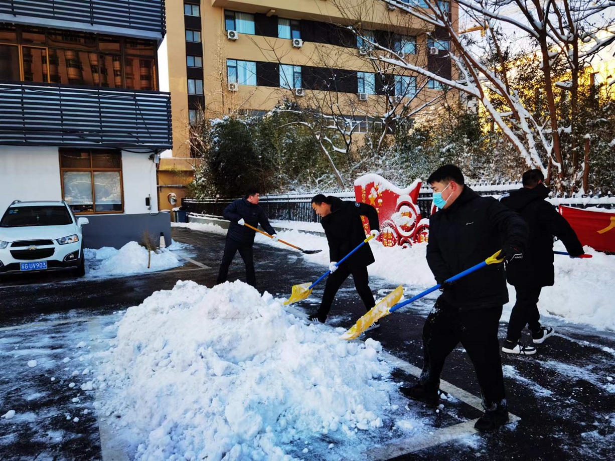 搶干會干巧勁足。“這塊用雪鏟推就行”“那邊不需要掃,直接撒融雪劑”“換這個,更省力”,掃雪現(xiàn)場,大家齊心協(xié)力,組織有序,紛紛施展出自己的“巧勁”。有的員工用鐵鍬鏟雪,有的用掃帚清掃,還有的負(fù)責(zé)運輸積雪。一時間,院內(nèi)響起“叮叮當(dāng)當(dāng)”了鏟雪聲、掃雪聲,匯成了一首團(tuán)結(jié)協(xié)作、搶干會干的的贊歌。