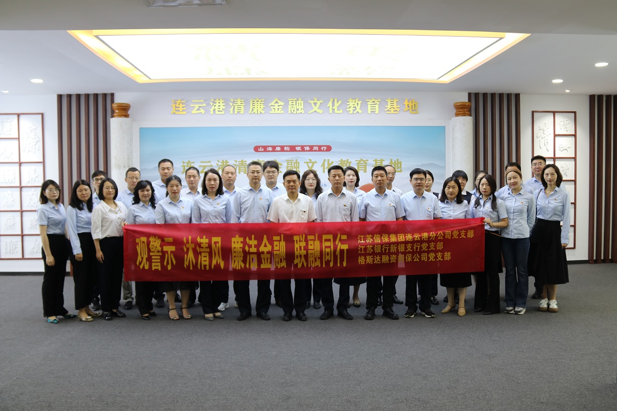 為進(jìn)一步深入推進(jìn)清廉金融文化建設(shè),引導(dǎo)黨員干部牢固樹立廉潔自律意識,做到警鐘長鳴,切實(shí)發(fā)揮“聯(lián)融”黨建品牌的牽引帶動作用。近日,我支部與江蘇信保集團(tuán)連云港分公司黨支部、江蘇銀行新銀支行黨支部聯(lián)合組織“觀警示·沐清風(fēng) 廉潔金融·聯(lián)融同行”共建活動,一同前往清廉金融文化教育基地,接受反腐倡廉教育,感受清廉金融文化洗禮。