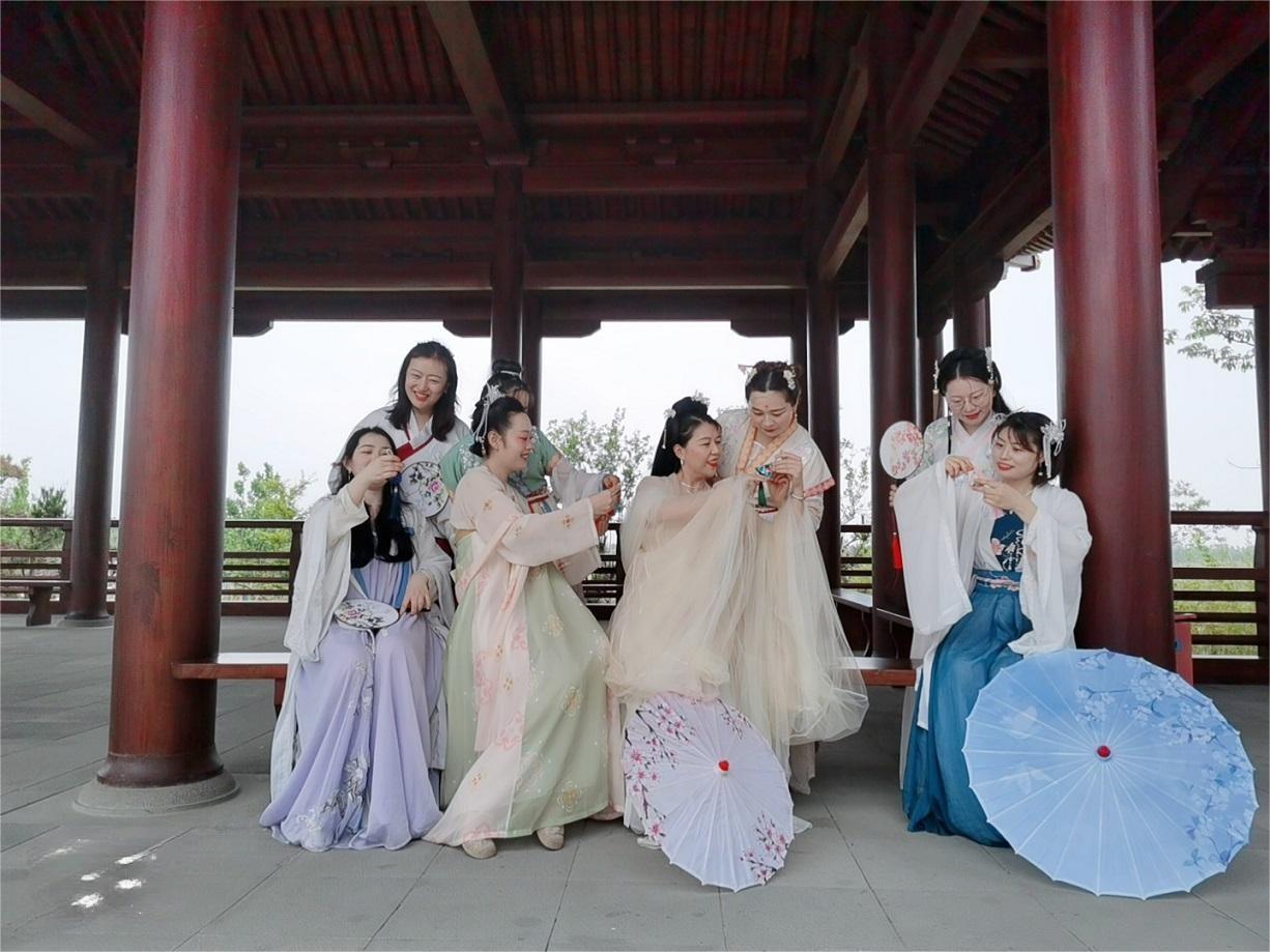 活動現(xiàn)場,來自金融板塊各部門的20余名員工,身著漢、唐、宋、明不同形制華美優(yōu)雅、端莊秀麗的漢服,攜手起舞,漫步在園博園的各個角落,為這個現(xiàn)代都市帶來了一抹醉人、古樸的文化氣息。著漢服的員工們重溫古代禮儀和儀式,感受中華文化的深厚底蘊(yùn)。還開展了誦讀經(jīng)典、繡荷包、刺五毒、趣味吃粽子、“粽”橫四海等豐富多彩的端午主題文化活動,充分展現(xiàn)了員工生動的活力和熱情。在錦鯉游動、荷塘月色、彩蝶翩翩的園內(nèi),大家沉浸于濃濃的中華古風(fēng)之中,用心感受著中華傳統(tǒng)文化的獨(dú)特魅力。此次活動展現(xiàn)了增強(qiáng)員工的凝聚力和歸屬感,為公司的發(fā)展注入了新的活力。