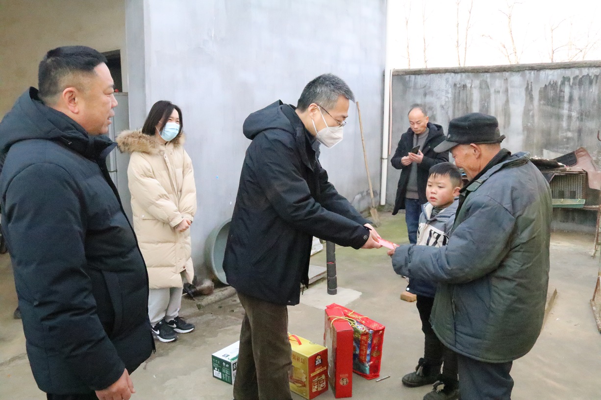 在小莒城村支部書記王官起等人的陪同下,徐兵一行為深入每戶困難群眾家中,查看他們的生活狀況,鼓勵(lì)他們樹立克服困難的決心和希望,隨后將慰問(wèn)金及節(jié)日禮包等慰問(wèn)品送到苦難群眾手中,同時(shí)向他們致以節(jié)日的問(wèn)候和祝福,把國(guó)企人的關(guān)愛送到他們身邊。