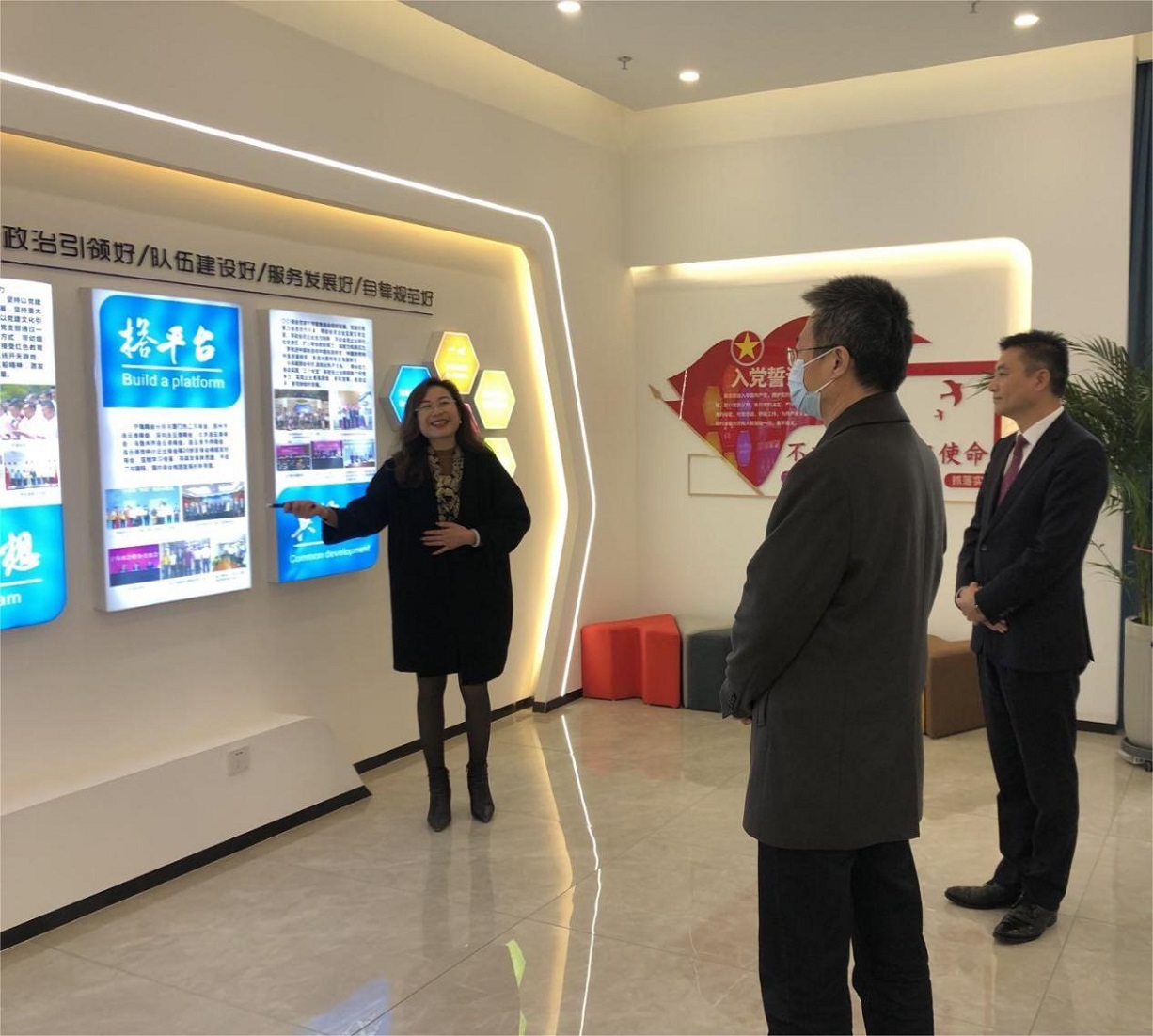 會(huì)上,徐兵董事長(zhǎng)聽(tīng)取了商會(huì)會(huì)長(zhǎng)陳愛(ài)明及會(huì)員企業(yè)的簡(jiǎn)單介紹,并實(shí)地參觀了商會(huì)的駐地企業(yè)、黨建活動(dòng)室,充分了解商會(huì)企業(yè)的發(fā)展困境及融資訴求。