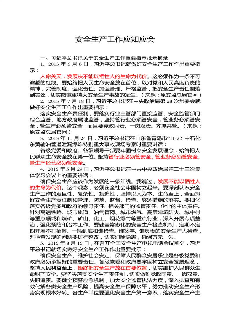 安全生產(chǎn)工作應知應會