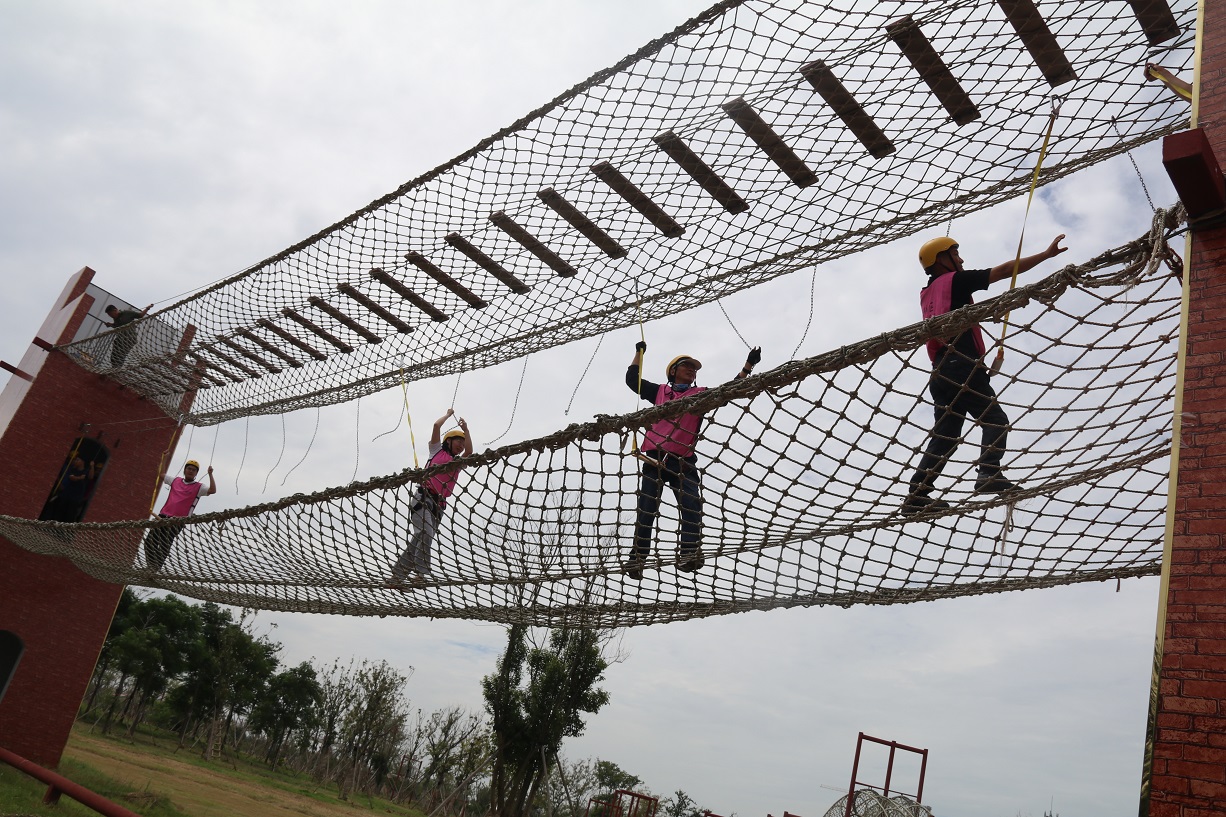 接著,四個(gè)小組先后體驗(yàn)了“強(qiáng)渡大渡河”、“飛奪瀘定橋”等紅色實(shí)景教育項(xiàng)目,使廣大職工體會(huì)到當(dāng)年紅軍長征的艱苦環(huán)境,感受了重走長征路的氛圍,增進(jìn)了職工之間的團(tuán)隊(duì)友誼、鍛煉了隊(duì)員勇于挑戰(zhàn)的堅(jiān)強(qiáng)意志。