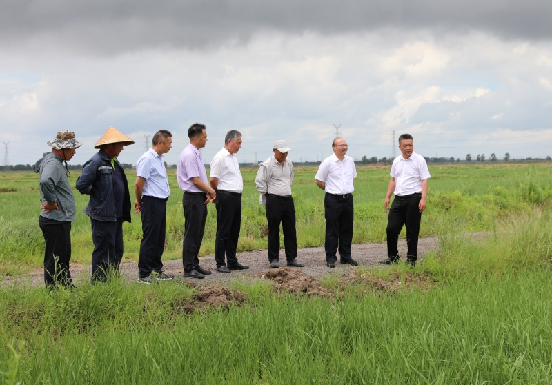 丁銳一行還到大新農(nóng)場實地查看新品種水稻種植情況。(仲偉彬)