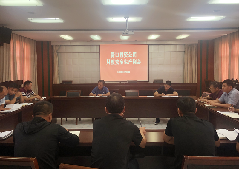 ? ? ? ?9月6日下午,青口投資公司召開9月安全生產(chǎn)例會,總結了8月安全生產(chǎn)及防汛工作,重點學習集團公司《市工投集團關于扎實開展好重點行業(yè)領域安全生產(chǎn)百日攻堅行動的通知》及市安委會《市安委會關于印發(fā)全市發(fā)展安全“三百工程”實施方案的通知》,進一步推進百日攻堅行動及“三百工程”工作,部署9月公司安全生產(chǎn)重點工作。