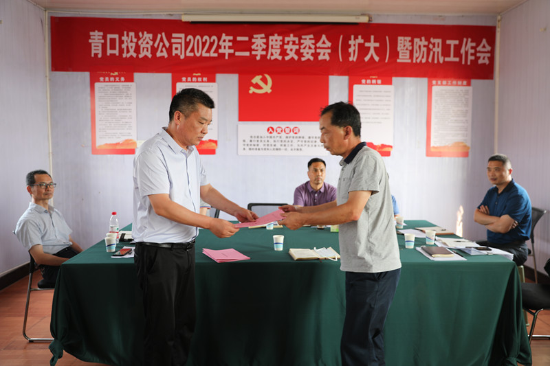 演練結(jié)束后,工作會(huì)在承擔(dān)主要防汛任務(wù)的三洋分場(chǎng)召開。會(huì)上,生產(chǎn)安全部匯報(bào)二季度安全工作情況,副總經(jīng)理許太冬傳達(dá)《關(guān)于深刻汲取近期事故教訓(xùn)采取嚴(yán)厲措施堅(jiān)決遏制事故多發(fā)勢(shì)頭的通知》,副總經(jīng)理?xiàng)钍孛鞑贾霉景踩ぷ骷胺姥垂ぷ?,各單位遞交2022年度防汛工作責(zé)任書。