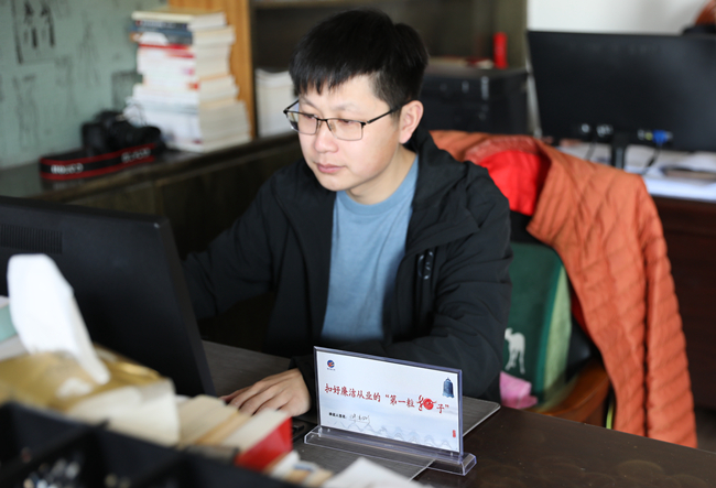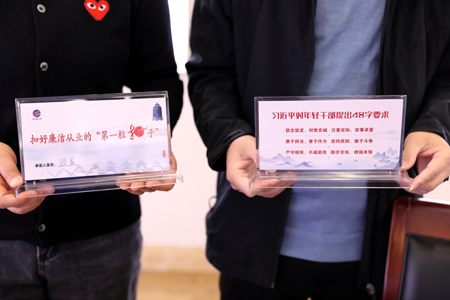 ? ? ? ?會后,公司紀委為10名新提拔干部發(fā)放了廉潔承諾桌牌,提醒他們常把“廉”字記心間,扣好廉潔從業(yè)的“第一??圩印薄#ㄇ嗉o)