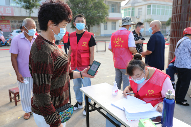 為保障核酸檢測工作順利進行,青口公司黨員服務(wù)隊志愿者和黃沙坨社區(qū)工作人員,提前劃分好信息登記組、人員引導(dǎo)組、秩序保障組和后期保障組,全方位協(xié)調(diào)管控核酸檢測現(xiàn)場,保障活動順利開展。在核酸檢測開始前,不少居民已經(jīng)來到核酸檢測現(xiàn)場排隊等候,秩序保障組的工作人員一邊維持秩序一邊拿著小喇叭,在一旁提醒大家:請大家規(guī)范佩戴口罩,主動出示蘇康碼和行程碼,保持一米線安全距離,準備好身份證、采樣碼,有序排隊。同時,青口公司志愿者們還積極幫助沒有智能手機和不會掃碼的老年居民,進行二維碼掃碼登記,提高了核酸檢測的效率和速度,也讓拘謹?shù)睦先寺冻隽诵δ槨?/span>