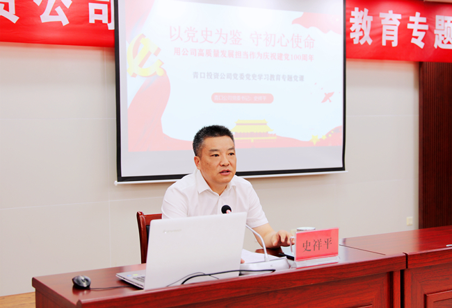 黨的百年華誕來臨之際,6月30日上午,青口公司黨委書記史祥平以《以黨史為鑒 守初心使命 用公司高質(zhì)量發(fā)展擔當作為慶祝建黨100周年》為題,為公司黨員干部上了一堂生動的黨史學(xué)習教育專題黨課。集團公司黨委黨史學(xué)習教育第一指導(dǎo)組組長、集團紀委副書記王建松應(yīng)邀參加會議。