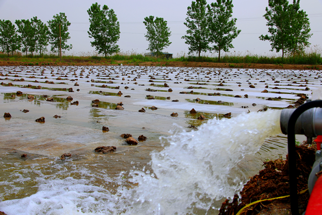 ▲塑盤(pán)育秧后進(jìn)入秧苗管理期,條田管理工正引水灌溉,全力做好保苗護(hù)苗工作,為下一步序時(shí)推進(jìn)插秧工作打下基礎(chǔ)。