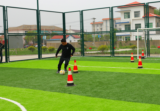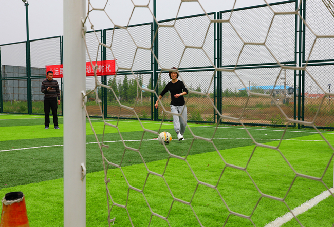在定位傳球射門比賽中,隊(duì)員們對(duì)準(zhǔn)腳下的足球,快速傳導(dǎo),精準(zhǔn)將足球射入球門。