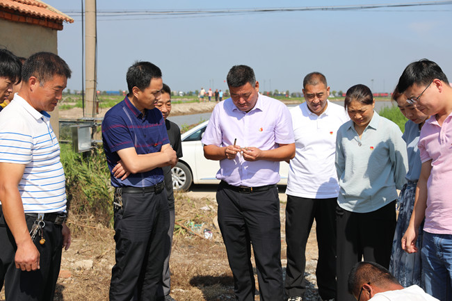 現(xiàn)場觀摩環(huán)節(jié),全體與會(huì)人員先后來到三洋支部黨員養(yǎng)殖示范崗、大新支部有機(jī)稻黨員示范崗,了解兩個(gè)“示范崗”的創(chuàng)建特色并聽取了宋海龍、俞正猛在各自崗位上的養(yǎng)殖、種植經(jīng)驗(yàn)。
