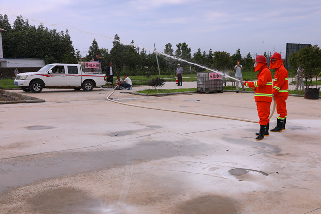 生命無演練,防患于未然。活動開始,安全生產部工作人員一一講述了火災種類、滅火器種類及使用方法,大家輪番上前,親手實踐了滅火器的使用方法。隨后,應急分隊按照預案實地演練汽油機水泵滅火流程。