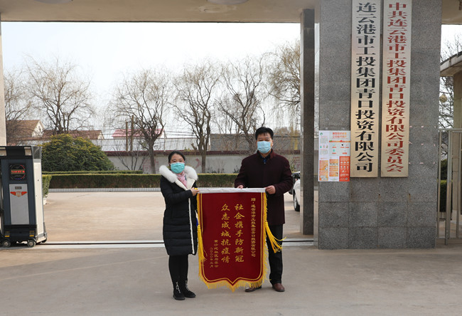 3月6日下午,開(kāi)發(fā)區(qū)猴嘴街道辦事處副主任孫寶川、黃沙坨社區(qū)黨支部書(shū)記、居委會(huì)主任程嵐一行,分別給我公司贈(zèng)送錦旗,向公司連日來(lái)積極組織黨員干部、志愿者聯(lián)合社區(qū)開(kāi)展疫情聯(lián)防聯(lián)控等工作表示誠(chéng)摯的感謝。