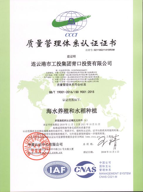 連云港市工投集團青口投資有限公司通過 ISO9001:2015、ISO14001:2015、OHSAS18001:2007管理體系認證。自2017年開始,公司開始著力于體系建設,并邀請北京華夏認證中心對我公司進行全面系統(tǒng)的審查,公司各部門和單位密切配合及時整改,通過近一年多地努力和完善,公司質(zhì)量、環(huán)境、安全三體系的建設順利通過認證。三體系認證的圓滿通過,是企業(yè)轉型發(fā)展過程中的必要手段,對優(yōu)化企業(yè)內(nèi)部管理具有十分重要的意義。(青宣)