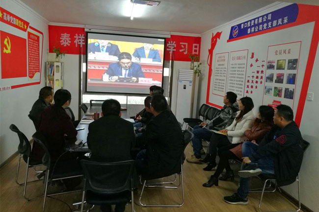 4月8日上午,青口投資公司以9個(gè)支部為單位,組織近百余名干群集中收看了全市“高質(zhì)發(fā)展 后發(fā)先至”動(dòng)員大會(huì)電視直播。
