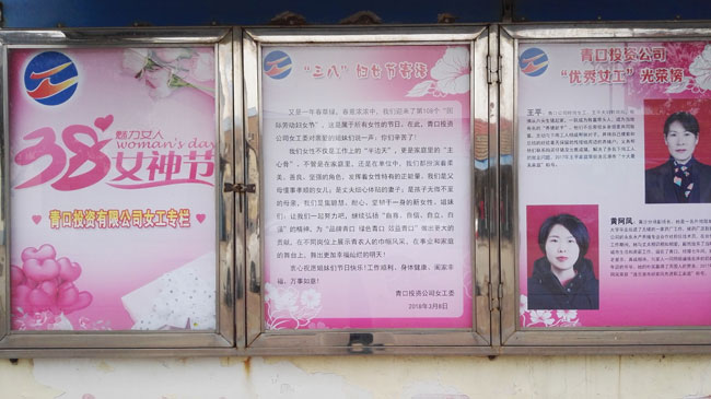 為表彰先進(jìn),樹立典型,激發(fā)女工們爭先創(chuàng)優(yōu)的意識(shí), “三八”節(jié)前夕,青口公司女工委開展了“優(yōu)秀女工”評(píng)選活動(dòng),對(duì)評(píng)選出來的優(yōu)秀女工加大了宣傳力度,并增設(shè)“三八”節(jié)櫥窗專欄,大力宣揚(yáng)公司先進(jìn)女工事跡?!?/span>