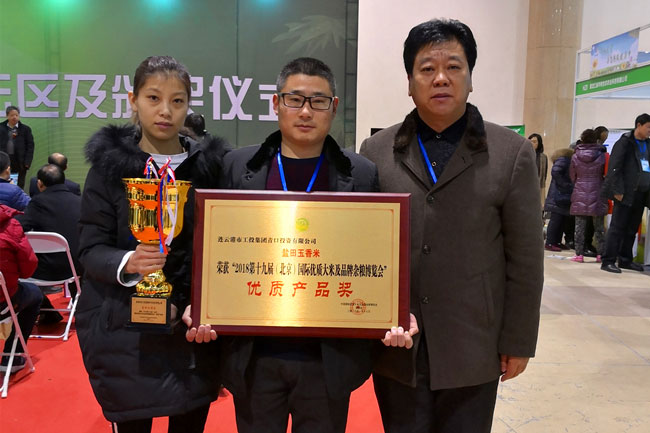 新年伊始,萬象更新,公司 “鹽田玉”大米再獲重量級榮譽。在 2018第十九屆(北京)國際優(yōu)質(zhì)大米及品牌雜糧博覽會上,我公司鹽田玉香米經(jīng)過產(chǎn)品品質(zhì)檢測、品嘗、營養(yǎng)分析等程序?qū)徍?,完全符合評獎要求,在600多家參展企業(yè)中脫穎而出,被授予“優(yōu)質(zhì)產(chǎn)品獎”榮譽稱號。