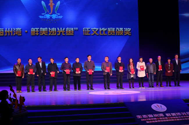在2017中國(連云港)沙光魚美食文化節(jié)頒獎晚會現場舉行了“生態(tài)海州灣 鮮美沙光魚”專題征文比賽頒獎儀式上,胡傳法董事長榮獲大賽一等獎。