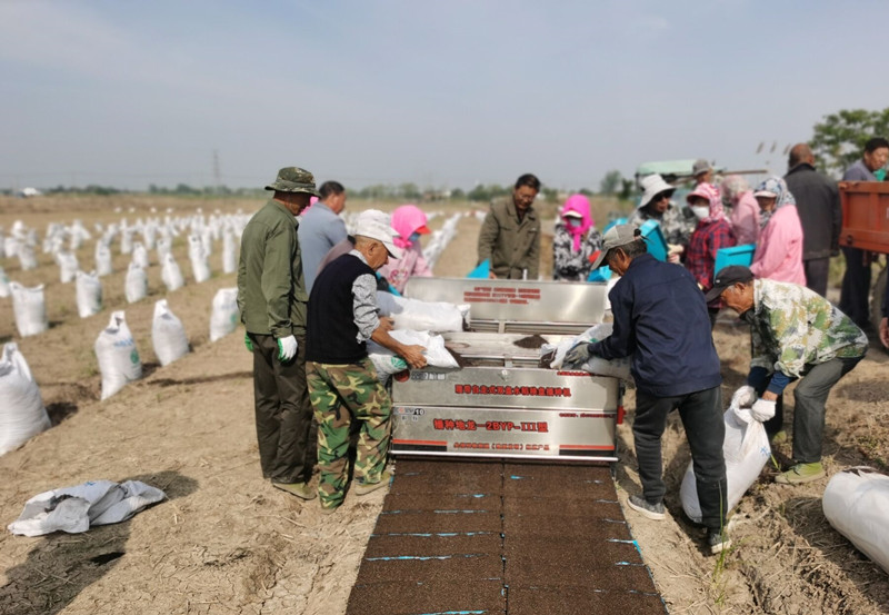 5月9日,大新農(nóng)場全面啟動育秧作業(yè),工人們在水稻育秧播種機兩側,分工有序地進行流水線育秧,確保農(nóng)業(yè)生產(chǎn)開好局、起好步。據(jù)統(tǒng)計,今年自營農(nóng)田共6228畝,預計需播機插秧27萬盤。(劉楊)