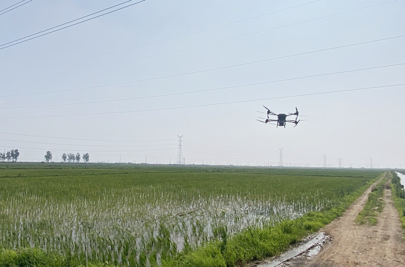 近日,大新農(nóng)場采用無人機適時開展追施返青肥,每天每臺施肥約400畝,節(jié)約人工成本,且噴灑均勻,保證水稻秧苗移栽后能夠及時返青,促進秧苗早分蘗。(大新農(nóng)場)