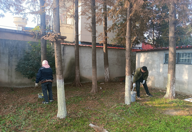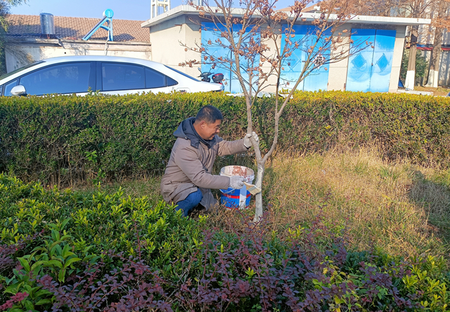 隨著天氣慢慢轉涼,為了減少綠化樹木病蟲害發(fā)生,泰祥公司對場區(qū)綠化樹木開展冬季“涂白行動”,為保護綠化樹木越冬做好準備。