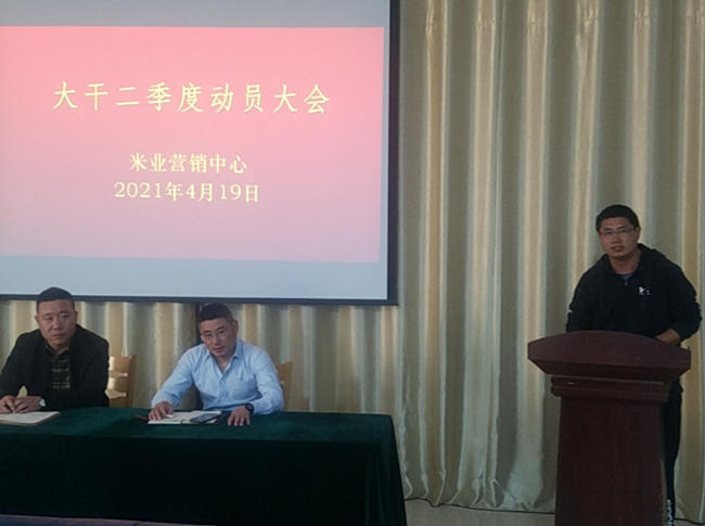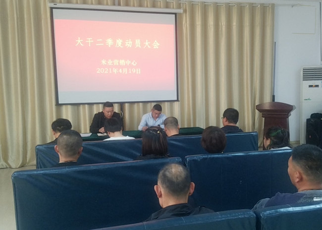 ? ? ? ?4月19日,米業(yè)營銷中心召開大干二季度動(dòng)員大會(huì),進(jìn)一步貫徹落實(shí)投資公司二屆一次職代會(huì)暨第二次工代會(huì)會(huì)議精神,結(jié)合“崗位建新功、創(chuàng)效爭(zhēng)一流”大干二季度勞動(dòng)競(jìng)賽,規(guī)劃部署米業(yè)全年工作,分解全年銷售任務(wù),以分解量化的季度指標(biāo),以月保季、以季保年,緊扣工作目標(biāo),明確責(zé)任分工,凝心聚力,共謀發(fā)展。