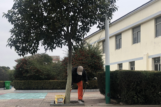 隨著氣溫的逐漸下降,場(chǎng)區(qū)植物開始進(jìn)入冬季生長(zhǎng)休眠期,為強(qiáng)化綠化養(yǎng)護(hù)管理,全力確保綠化植物安全越冬,近日,冬季樹木刷白防護(hù)工作全面啟動(dòng)。服務(wù)中心利用天氣晴好時(shí)機(jī)對(duì)場(chǎng)區(qū)區(qū)域內(nèi)的樹木進(jìn)行涂白防護(hù)。樹干刷一層“涂白劑”是入冬前為樹木進(jìn)行養(yǎng)護(hù)管理的一項(xiàng)重要內(nèi)容,不僅可以減少水分蒸發(fā),還可以增強(qiáng)樹木的防凍能力、防御病蟲害的滋生,具有殺菌的作用,為樹木來年萌發(fā)打基礎(chǔ)。