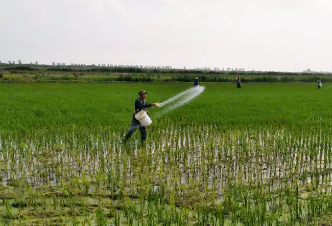 為不誤農(nóng)時,近日,農(nóng)場組織條田工施撒分蘗肥。由于今年雨水較多,水稻栽插后基本苗較足。水稻較常年返青快,長勢旺,苗總莖蘗苗明顯好于往年。因此返青與分蘗承接十分重要,大新農(nóng)場為保障條田用肥不斷檔,組織人員提前做好統(tǒng)計申報工作,確保農(nóng)場農(nóng)資供應(yīng)。 (楊 杰)